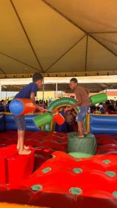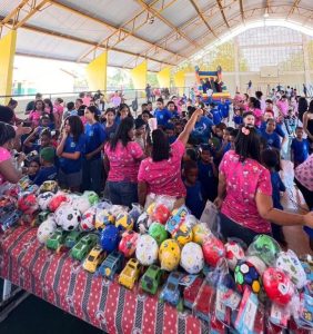 O centro do gramado do Estádio Municipal se transformou em um verdadeiro parque de diversão, com brinquedos como pula-pula, escorregadores, cama elástica e várias outras atrações, que garantiram a alegria da garotada. Além disso, houve entrega de brinquedos, lanches, brincadeiras e atividades recreativas, tornando o dia ainda mais inesquecível para as crianças do município e dos distritos de Cangas e Morro de São João.