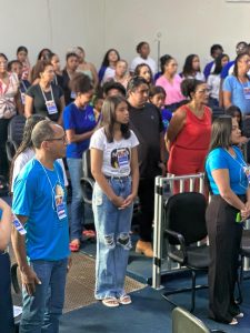 O encontro reuniu representantes da gestão municipal, do Poder Legislativo, Conselho Tutelar, CMDCA, equipes das secretarias, alunos, parceiros e a comunidade. Estiveram presentes o prefeito Levi Teixeira, o vice-prefeito Domingos Rapaz, o presidente da Câmara Municipal, vereador Carloman Lemos, acompanhado dos vereadores Sueli Maria, Evanuza, Jorge Bailon, Luango, Anduvaldo, Cleidivan e Lindamar, reforçando a união entre os poderes em prol das políticas públicas voltadas à infância e adolescência.